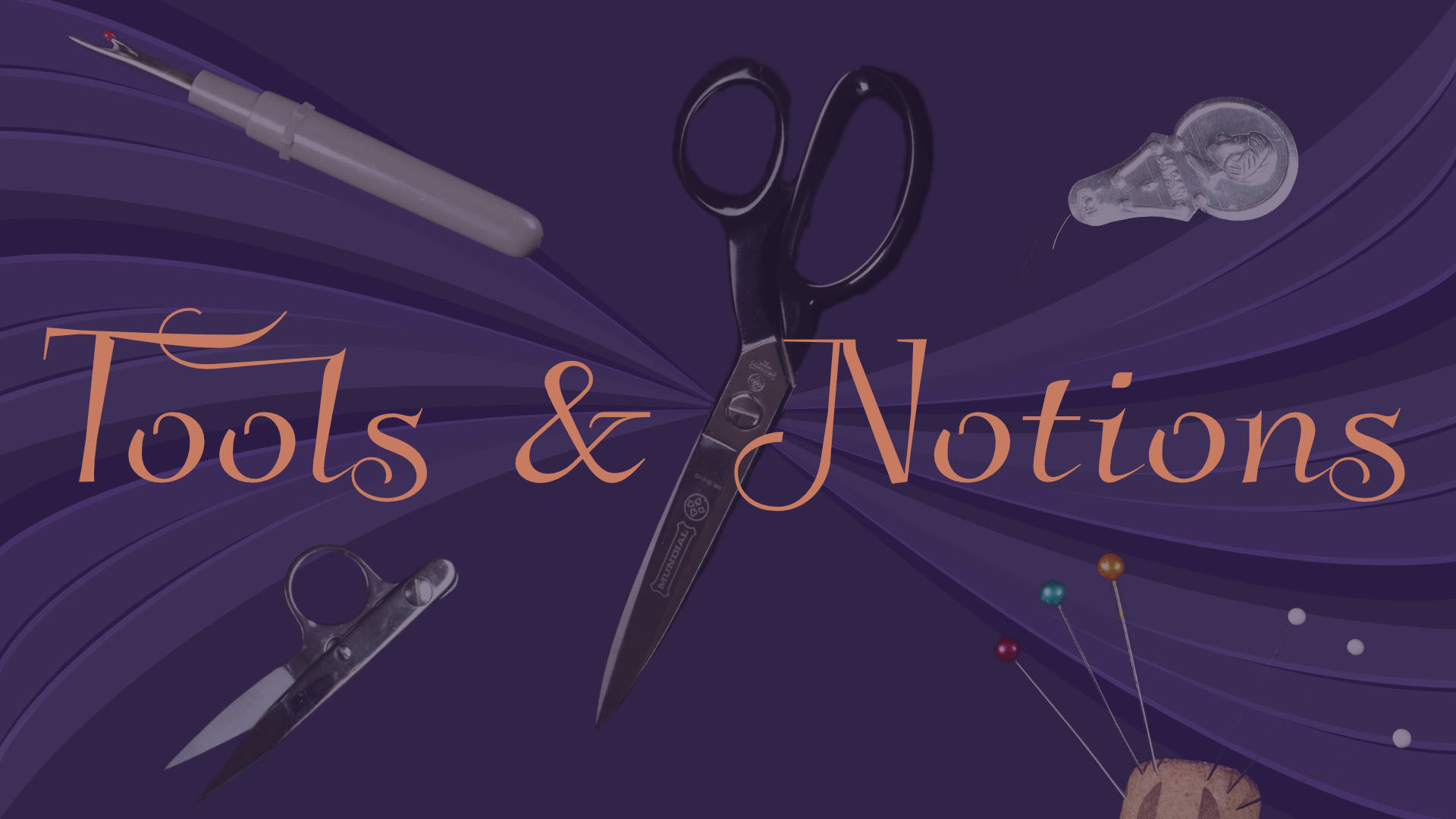 Sewing notions are (according to wikipedia): “small objects or accessories, including items that are sewn or otherwise attached to a finished article, such as buttons, snaps, and collar stays. Notions also include the small tools used in sewing, such as needles, thread, pins, marking pens, elastic, and seam rippers.”