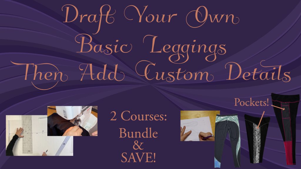 Bundle and Save! Get both the basic legging drafting course and the leggings details course so you can draft and sew a wide variety of leggings that will rival any ready-to-wear leggings or pattern out there. Plus, you get to decide the features you want.