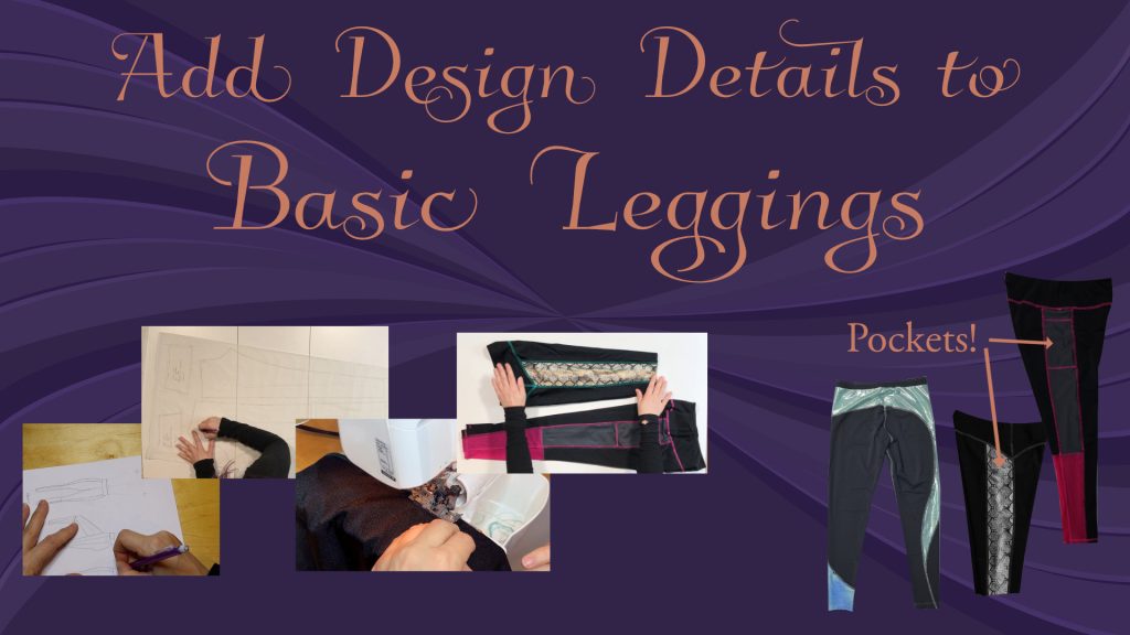 Learn how to take a basic legging pattern and add details commonly found in ready-to-wear leggings (Pockets!) as well as some less common designs like asymmetric stripes.